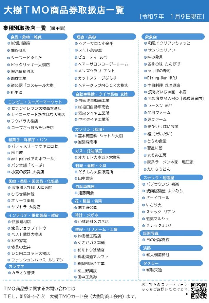 TMO商品券 取扱店舗 2026年1月9日現在